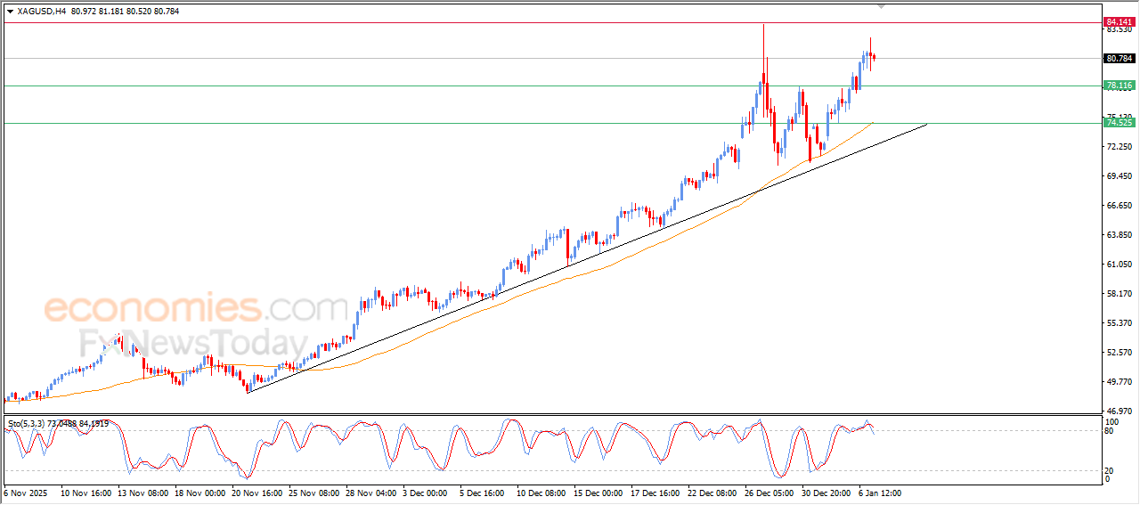銀価格は、前回の上昇による利益を集めるため、終日のレベルで変動の激しい取引となった。特にネガティブなシグナルの出現により、相対力指数で明らかな買われ過ぎ状態の一部を解消し、短期的に利益を再開するのに役立つ可能性のあるポジティブな強さを集めようとした。EMA50を上回っての取引によるポジティブなサポートが継続する中、このトレンドをサポートするトレンドラインに沿って取引されており、短期的には主要な強気トレンドの強さと優位性が強化されている。