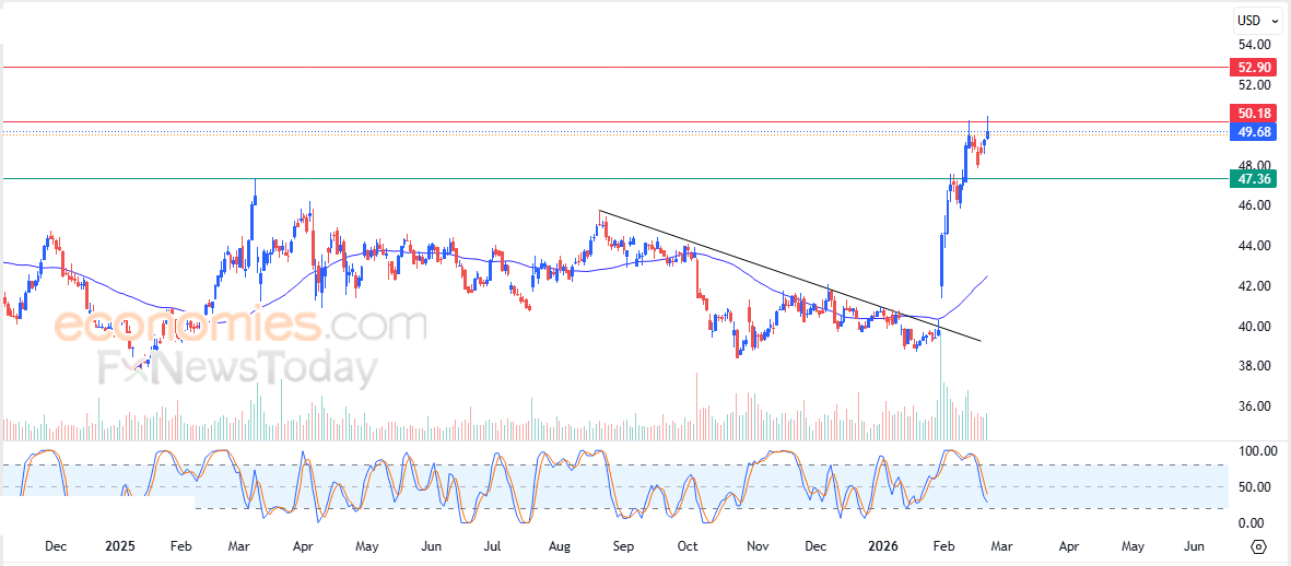 したがって、今後の取引セッション中に株価が上昇すると予想しており、特に前述の抵抗レベルである 50.00 ドルを上抜けて次の抵抗レベルである 53.00 ドルをターゲットにすると予想しています。