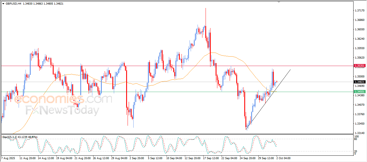 GBPUSD 価格は、短期的には強気修正波が優勢で、比較的急勾配のトレンドラインに沿った取引が行われている中、前回の上昇による利益を集めようと、また回復して再び上昇するのに役立つ可能性のある強気の勢いを得ようと、直近の日中レベルで変動の激しい取引が見られました。これは、このトレンドの強さと優位性を示しており、特に EMA50 を上回る取引によって表されるダイナミック サポートにより、短期的には価格が回復する可能性が高まります。また、価格が買われ過ぎ状態から抜け出すことに成功した後、相対的な強さの指標にポジティブな重複シグナルが現れ、さらなる利益獲得への道が開かれています。