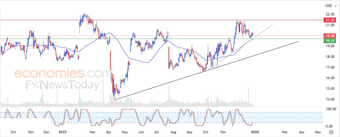 したがって、19.72のサポートが維持される限り、今後の日中取引で株価が上昇し、21.45の主要レジスタンスレベルを目指すと予想しています。