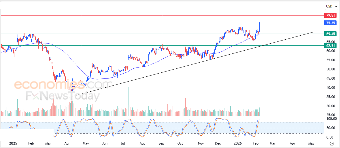 したがって、69.45ドルのサポートレベルが維持される限り、今後の取引で株価は上昇し、最初のレジスタンスである79.50ドルを目指すと予想しています。